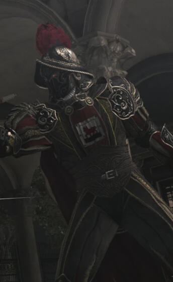 Short, Wavy Brown hair, slicked back with sweat. Frenzied Orange eyes (Example) with heavy dark circles beneath. Slim, Muscular Frame. Body Littered in battle scars and the burns of the three fingers (Example)Dons the helmet and armor of Leyndell knights, cursed with the briar gauntlets and leggings - still yet marking him as a criminal.Origins: Leyndell Royal Capital